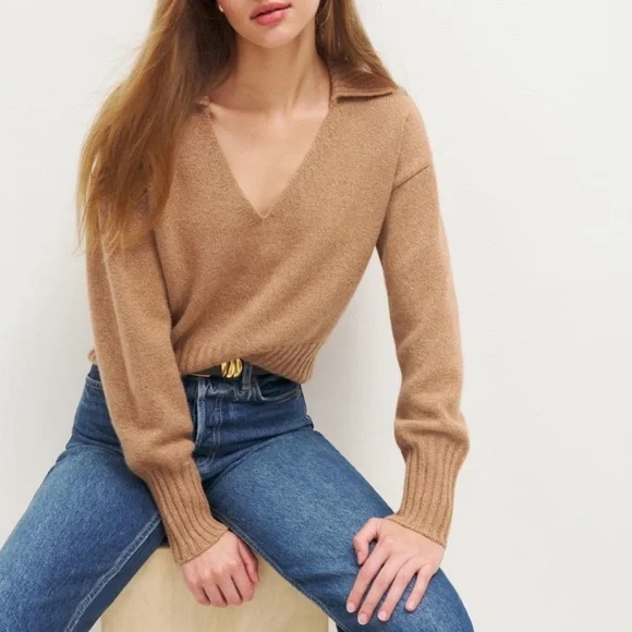 Questions? Leave a comment below!Reformation Cashmere Polo SweaterBrand New! Never Worn.Color PankoSize XLLike your dreams, your 401k, or our sweaters, some things are just worth the investment. Made with high-quality materials like regeneratively grown cotton, recycled cashmere, and traceable wool, you'll buy one today and wear it for life.The detailsThis is a fine-gauge recycled cashmere blend sweater knit - 90% Recycled Cashmere, 10% Cashmere. Hand wash + dry flat. More on fabric & care.The Beckie Cashmere Collared Sweater pairs well with the Val 90s Mid Rise Straight Jeans, the Small Vittoria Tote, and the Cynthia High Rise Straight Jeans.Reformation sweater, reformation cashmere, cashmere sweater, coastal grandma, cashmere, cashmere wool sweater, reformation winter, reformation classy, trendy, Taylor swift reformation cashmere sweater, taylor swift antihero sweater, reformation cashmere polo sweater,